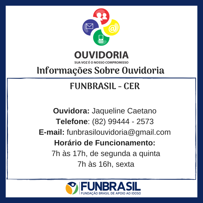 Por meio da Ouvidoria da Funbrasil, poderão ser registradas reclamações, denúncias, elogios, sugestões e solicitações de providências relacionadas às atividades desenvolvidas pela Fundação, à execução de parcerias, projetos, convênios, termos de fomento ou colaboração, bem como à atuação de seus gestores, empregados e prestadores de serviço.